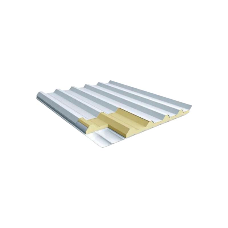 O sistema é constituído deuma telha superior 40/980 e uma telha forro inferior com núcleo de PIR - Espuma rígida com excelente desempenho térmico, acústico, mecânico e resistente à chamas.